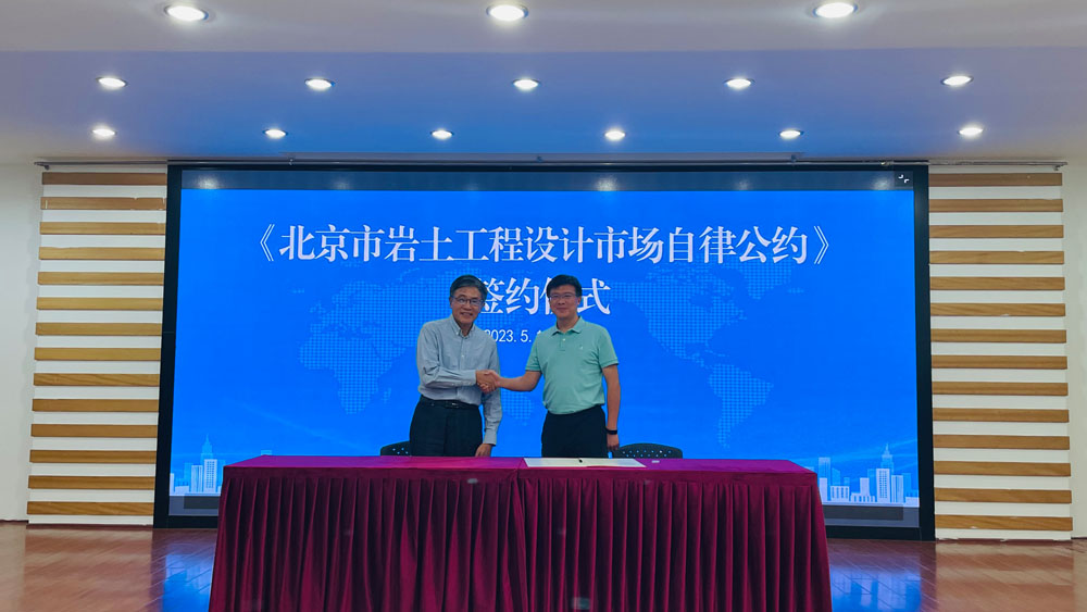 第六條 堅持原則、依法維權(quán) 會后,京能地質(zhì)與北京巖土工程協(xié)會簽訂了《北京市巖土工程設(shè)計市場自律公約》,建立起巖土設(shè)計行業(yè)自我管理、自我約束、互相監(jiān)督、共同發(fā)展的自律機制,共同維護設(shè)計市場正常的經(jīng)營秩序。