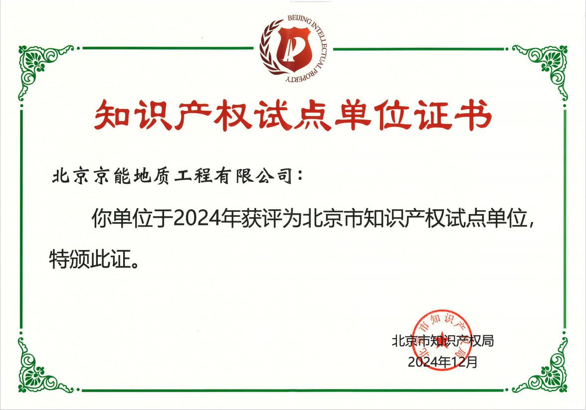 近日,北京市知識產(chǎn)權(quán)局公布2024年北京市知識產(chǎn)權(quán)試點單位名單,北京京能地質(zhì)工程有限公司憑借在知識產(chǎn)權(quán)創(chuàng)造、運用、保護和管理等方面取得的優(yōu)異成績,被認(rèn)定為“北京市知識產(chǎn)權(quán)試點單位”。